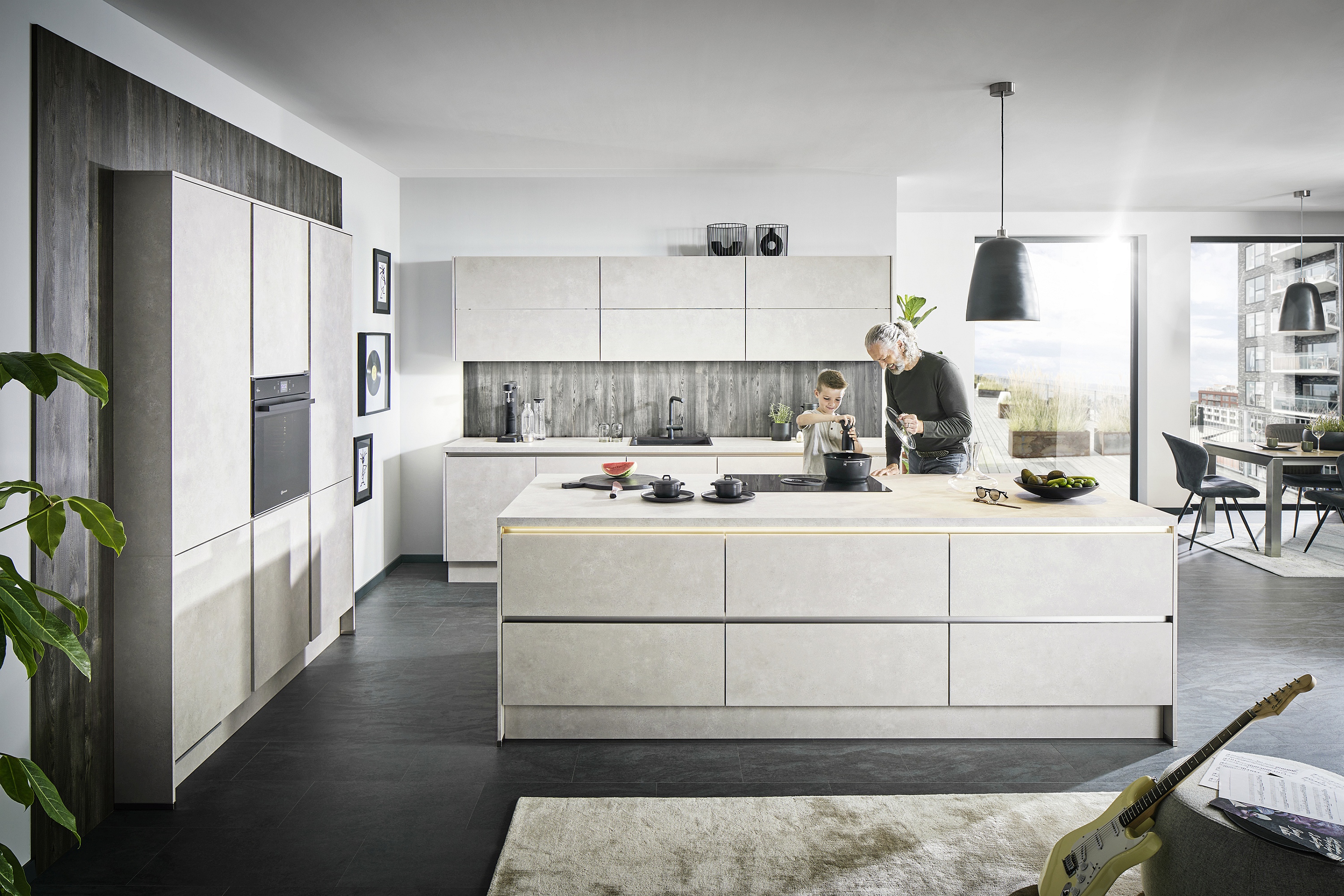 Dünne Slim Line-Arbeitsplatten verleihen der Küche durch ihre schlanke Eleganz und Ästhetik ein zeitgemäßes und elegantes Aussehen. Außerdem hat pino eine neue, klare Linienführung in der Frontaufteilung geschaffen, die optisch sofort besticht.